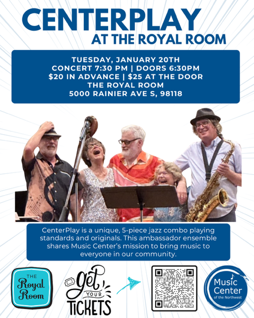 CenterPlay is a unique 5-piece jazz combo playing standards and originals. This ambassador ensemble shares Music Center’s mission to bring music to everyone in our community