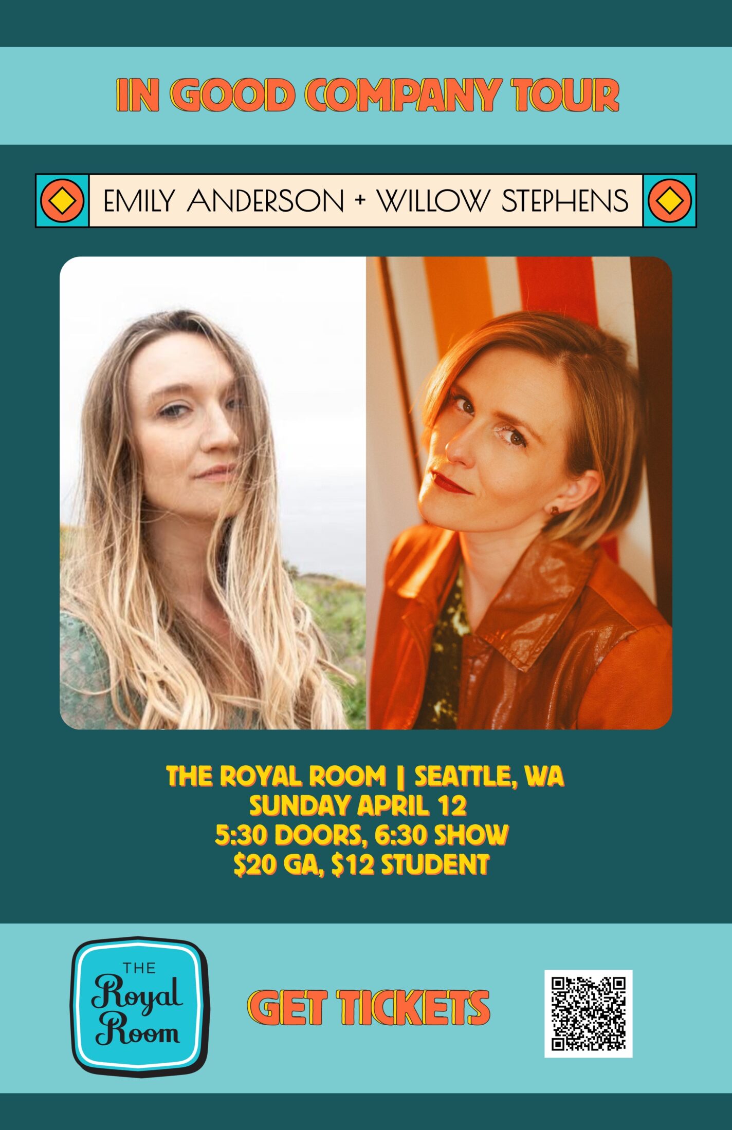 Emily Anderson and Willow Stephens have joined forces for the “In Good Company Tour”. Emily Anderson is an indie-folk singer-songwriter and Alaska Grown songstress with a proclivity for puns. Willow Stephens is an indie-soul artist making music to get you out of your funk and back in your groove. Join us for an evening celebrating songwriting, merriment and friendship!